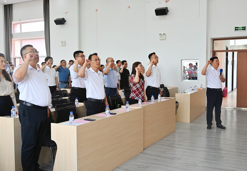 在师生们激昂的国歌声中,本次活动拉开帷幕。首先,副经理胡封晔同志带领与会党员重温入党誓词。新老党员面对鲜红的党旗,庄严地举起右拳宣誓,声音铿锵而豪迈。