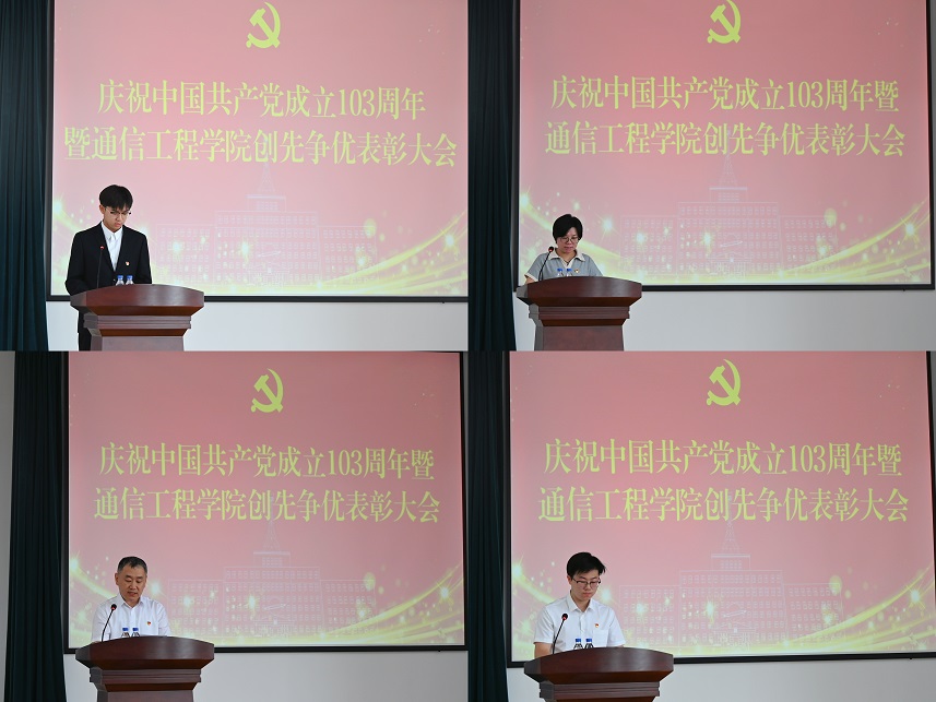 为庆祝中国共产党成立103周年,全面贯彻落实习近平新时代中国特色社会主义思想,持续巩固推进党纪学习教育,7月1日上午,公司党委在南湖校区图书馆四楼报告厅隆重举办了庆祝中国共产党成立103周年暨创先争优表彰大会。公司全体教工党员和员工党员代表参加会议。会议由党委副书记刘星彤主持。