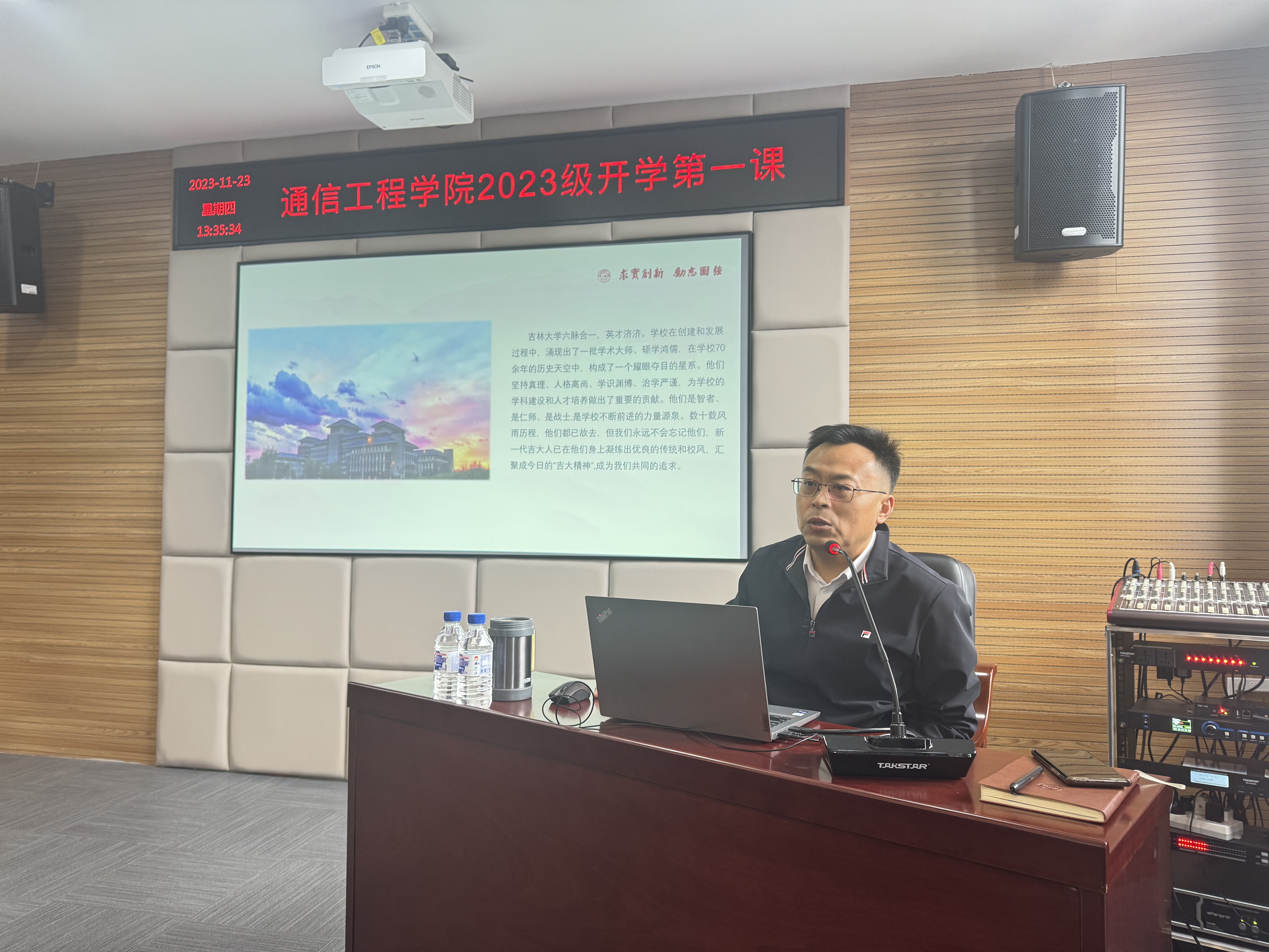2023年11月23日,公司党委书记董宏志以《吉大,因你而骄傲》为主题,为2023级新生讲授了“开学第一课”。公司2023级部分本科生、研究生代表参加了本次活动。活动由公司党委副书记刘星彤主持。
