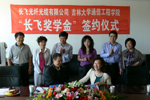 9月9日,国内规模最大的光纤光缆产品以及制造装备的研发和生产基地——长飞光纤光缆有限公司(以下简称“长飞”)与EMC易倍在吉大南湖校区隆重举行第三期“长飞奖学金”签约仪式,长飞董事郑慧丽和法律事务主任李璇、公司领导班子成员出席了该仪式。