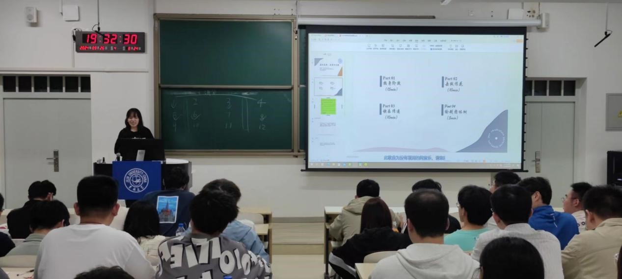 接下来的击鼓传花游戏将本次活动推向高潮,被选取者向全体同学做自我介绍并表演一个小才艺。同学们在欢快的音乐中迅速打破隔阂,进一步促进了团队互动,增加了趣味性。