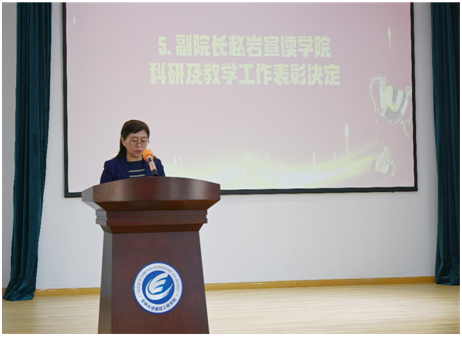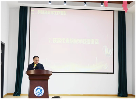 表彰环节中,为鼓励全院教师积极投入科研和教学工作,副经理赵岩宣读了本年度公司科研贡献奖和教学贡献奖的表彰决定,对过去一年中,为公司教学和科研工作做出突出贡献的人员进行表彰,共计16人和4个团队获奖。胡贵军教授代表获奖教师和团队发言,他讲到,今年获批国家重点研发项目是自己、团队、公司和公司共同努力的结果,时光不负有心人,星光不负赶路人,经历了7个多月的呕心沥血,披星戴月,最终和国内顶尖单位的科研团队竞争并胜出,这其中的艰辛历历在目,在今后的工作中,也将以此为契机,立足国家长远发展需求和世界科技前沿,谱写高水平科技自立自强的新篇章。